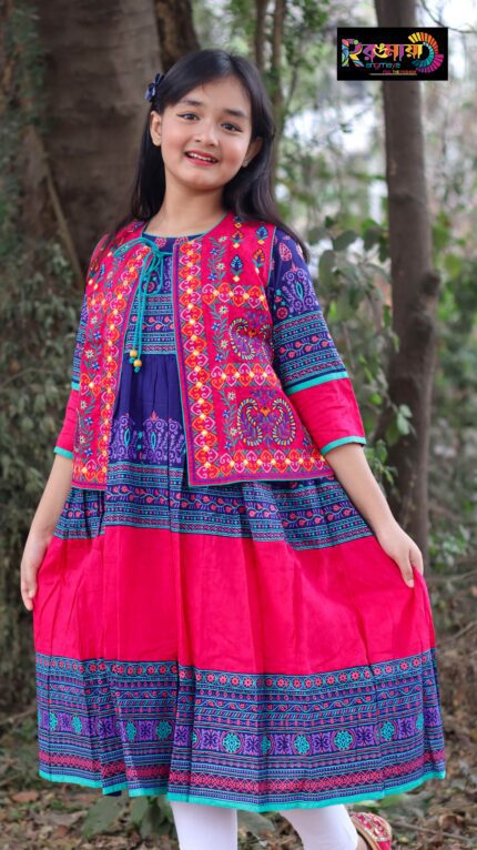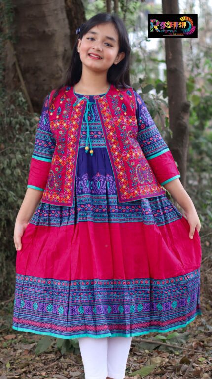 Price range: 800৳ through 1,300৳Rangmaya cotton kurti with koti for baby girls- BKGT-3037