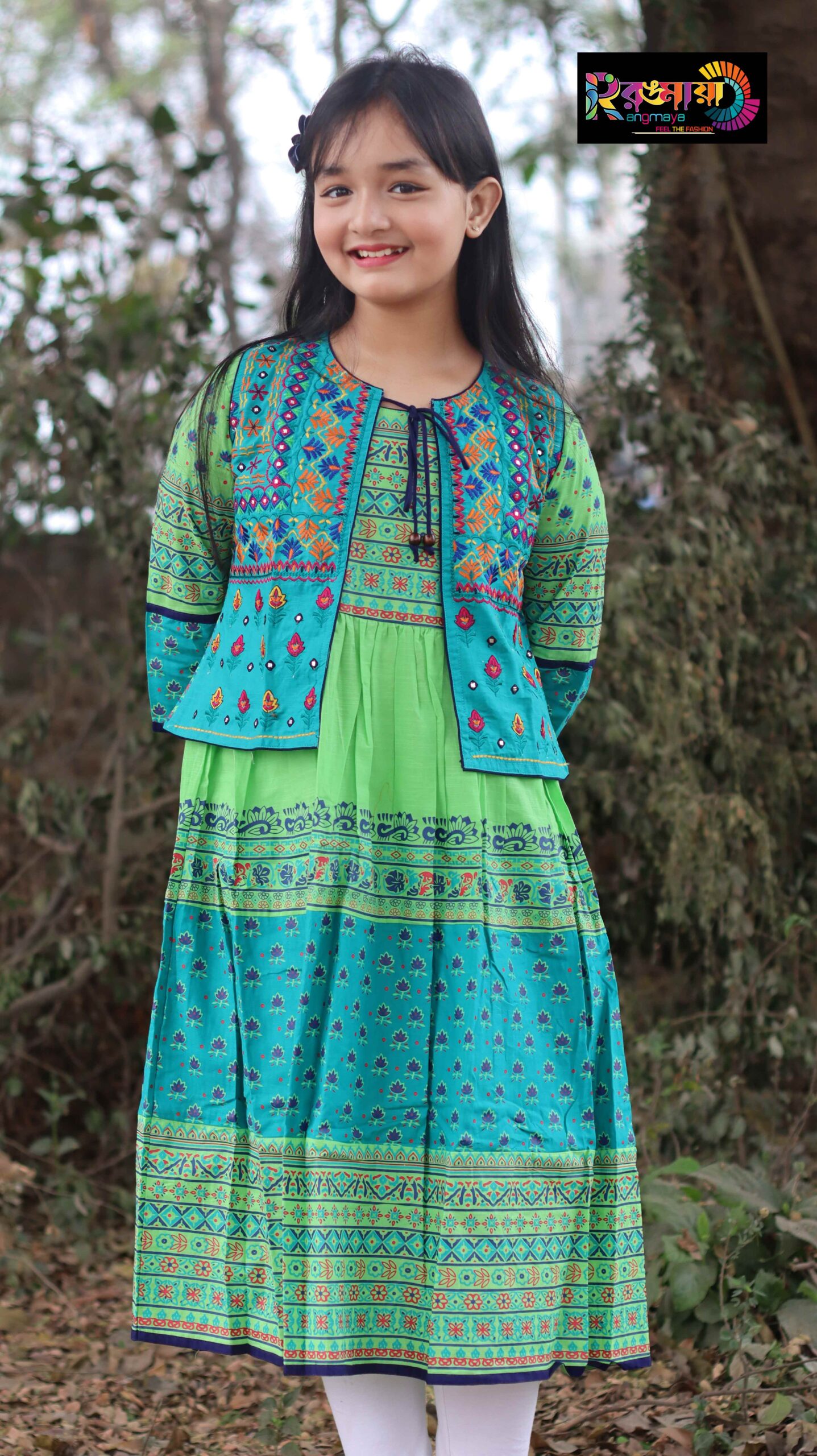 Rangmaya cotton kurti with koti for baby girls- BKGT-3034